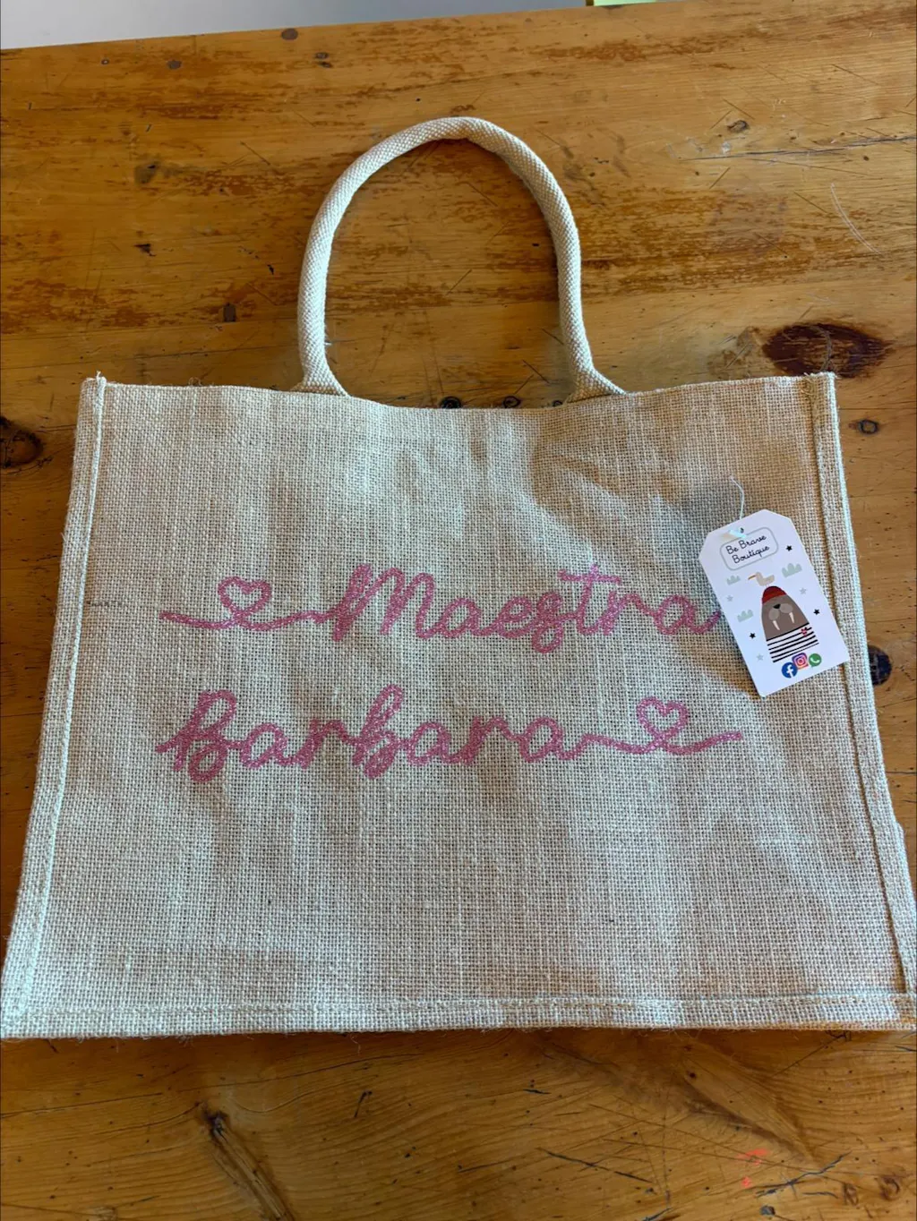 Non perdere l'opportunità di rendere quest'anno scolastico davvero indimenticabile per le nostre maestre! Ordina subito una delle nostre borse in juta personalizzate e preparati a vedere i loro sorrisi quando riceveranno questo regalo speciale.