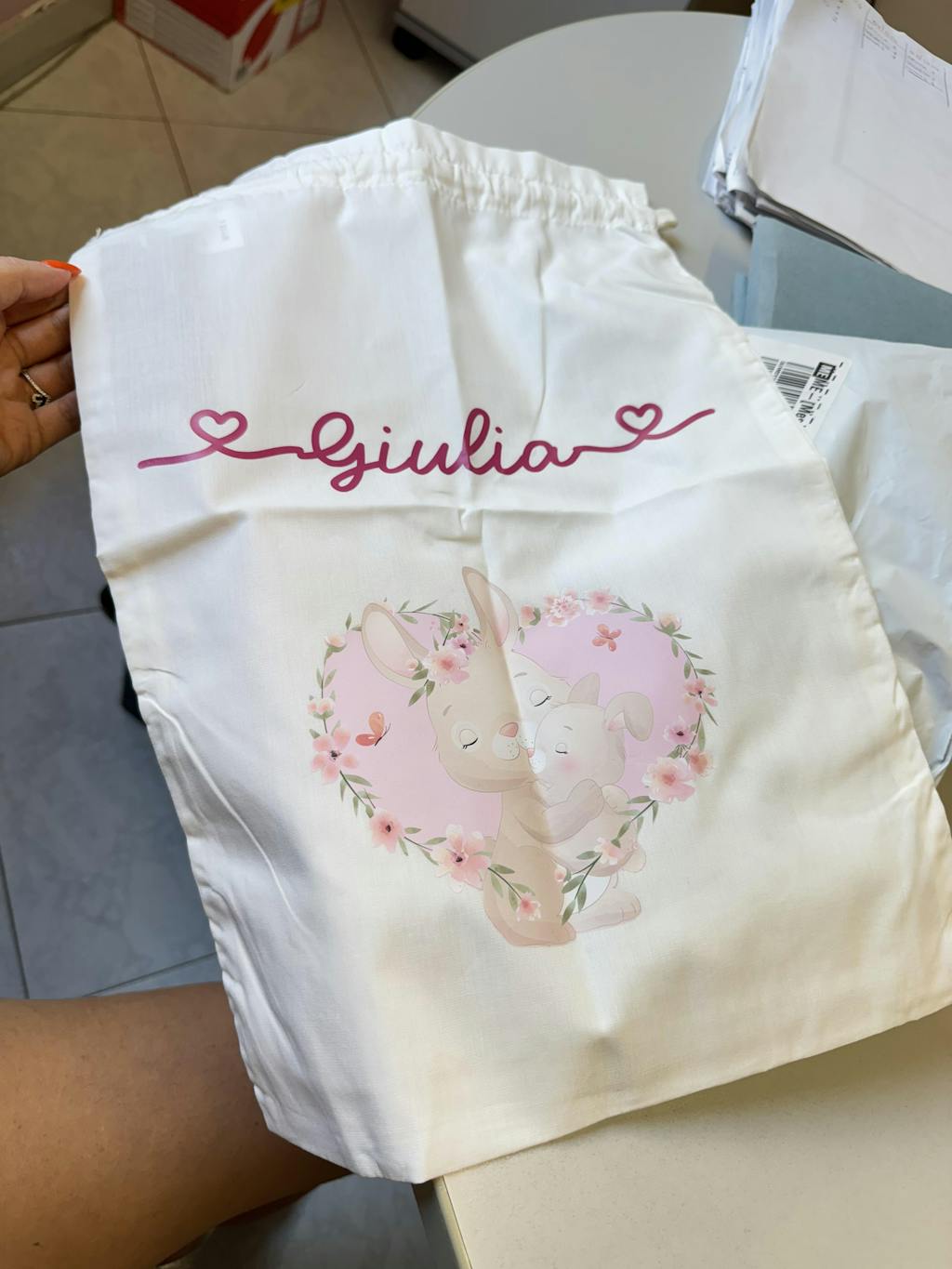 Sacchetto Nascita Neonato Personalizzato – Ideale per Cambio, Ospedale e Asilo Dolce Coniglietto
