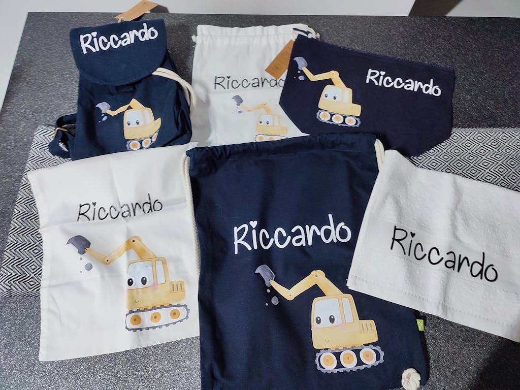 Mini Zaino asilo personalizzabile in cotone Escavatore