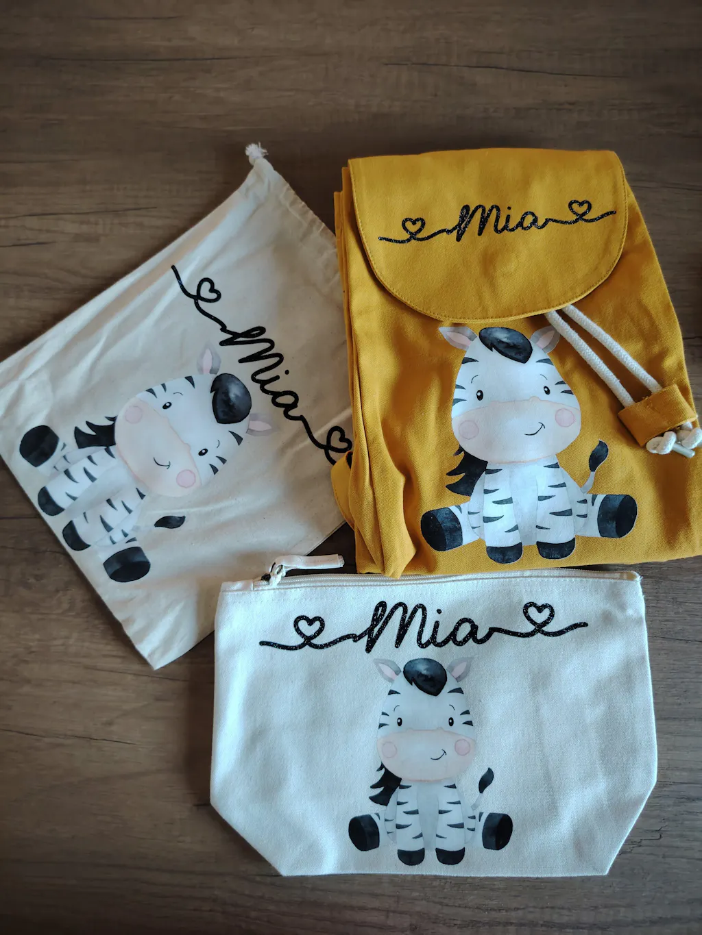 Set Asilo Bambino Personalizzato – Zaino, Sacchetto e Beauty Giraffa