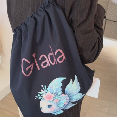 SUPER Set Asilo Completo Personalizzato – Mini Zaino, Sacchetto Beauty Bambino Pesciolina Azzurra