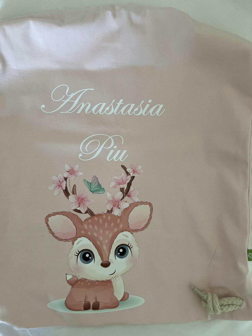 Zaino asilo personalizzabile a sacca in cotone pesante Cerbiatto fiori di pesco