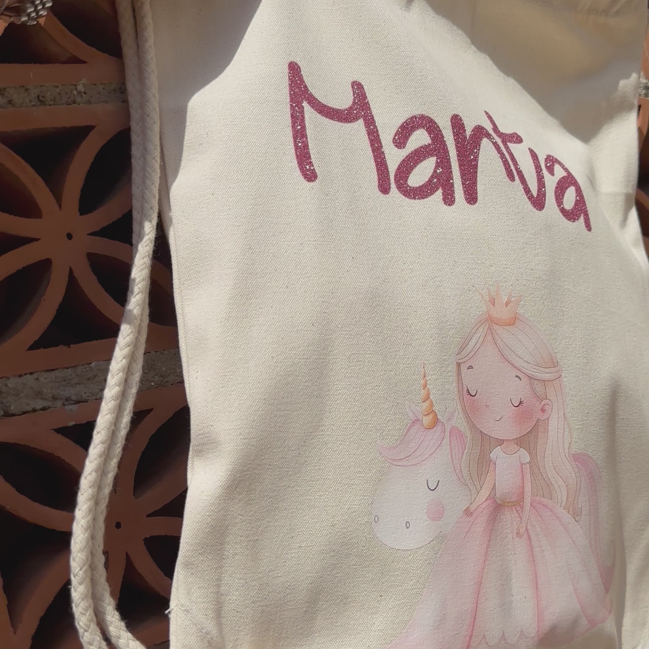 Zaino a sacca in cotone pesante Principessa Unicorno