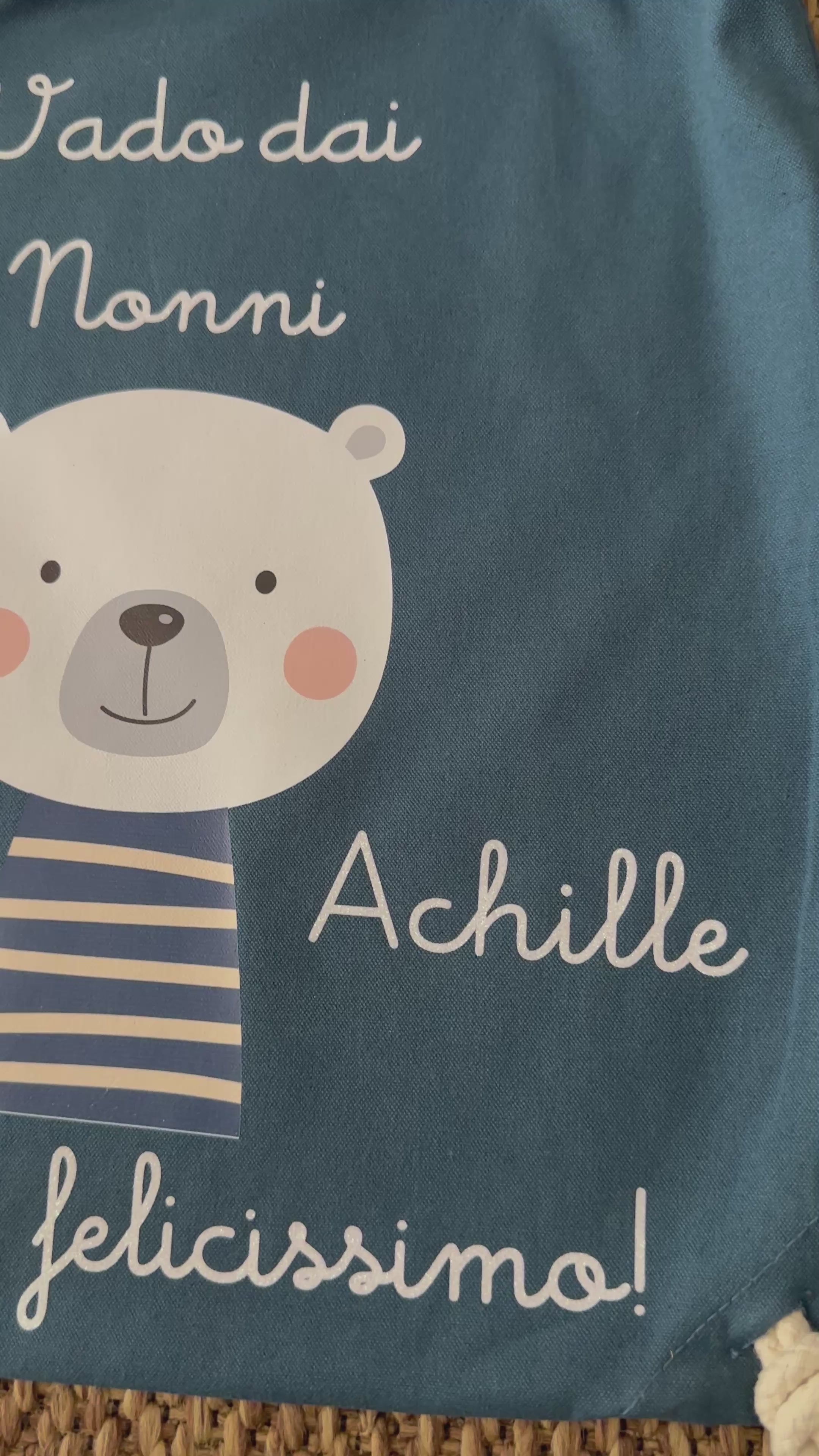 Personalizzazione: Personalizza la tua sacca con il nome desiderato. Il nome sarà stampato lateralmente all'orsetto nel colore scelto tra le opzioni disponibili, rendendo la sacca unica e speciale.